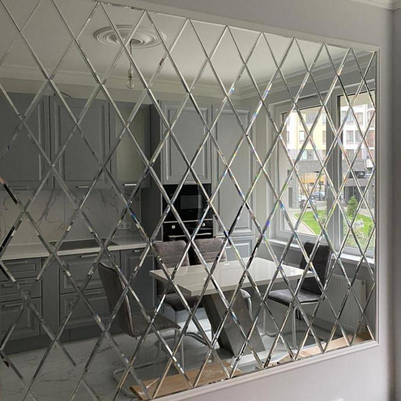 Использована зеркальная квадратная плитка с фацетом.
